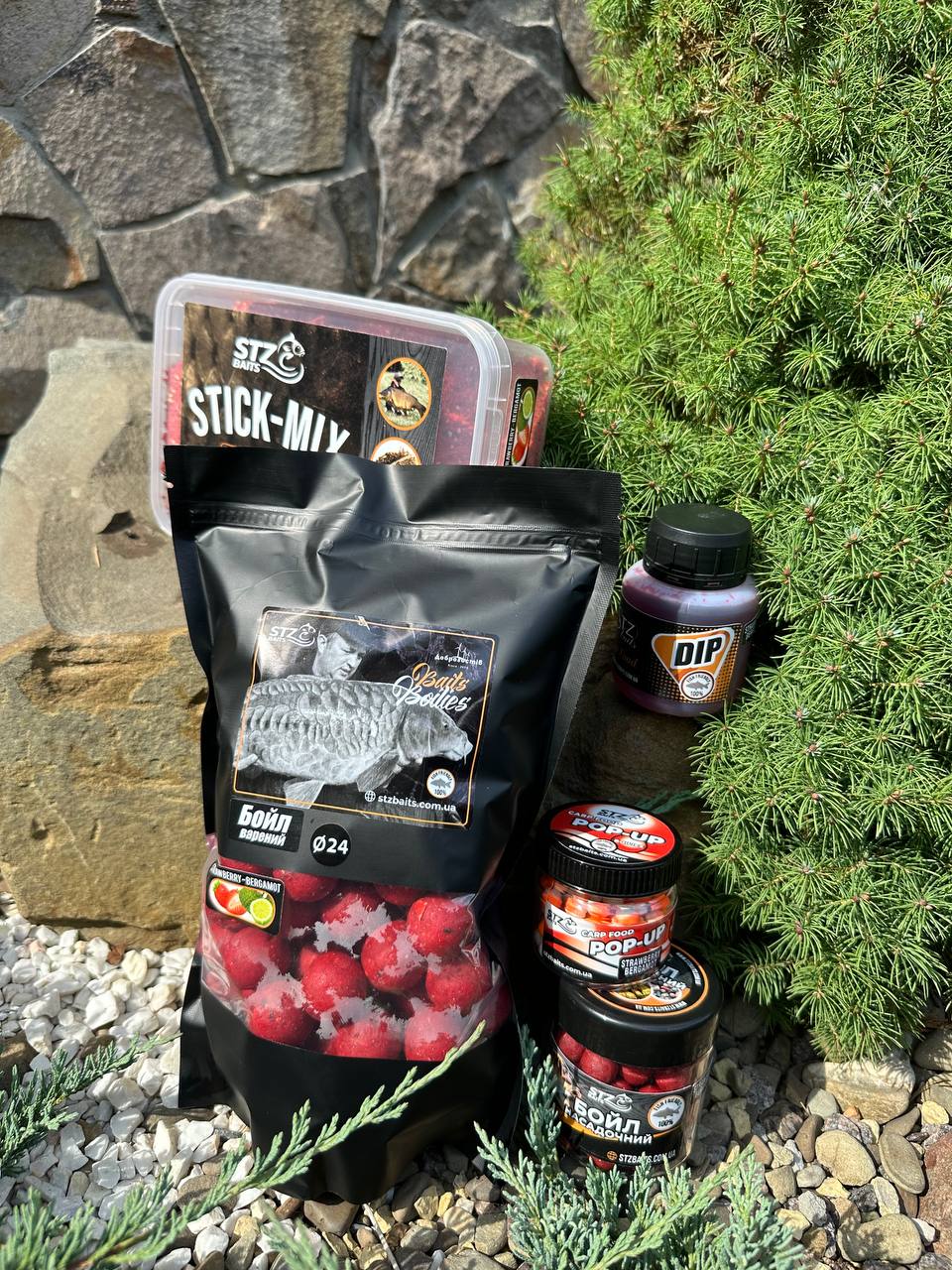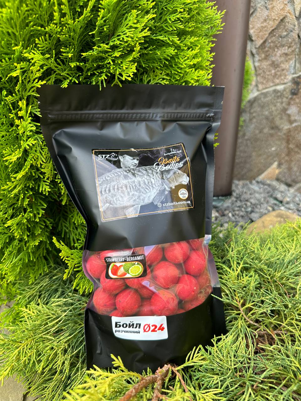 Бойли STRAWBERRY BERGAMOT скатані на міксі ,що гарно збалансований рослинними , молочними та рибними протеїнами.Натуральний ароматизатор трускавки  надає йому приємного фруктового запаху,який гарно підкреслюють ніжні нотки бергамоту.