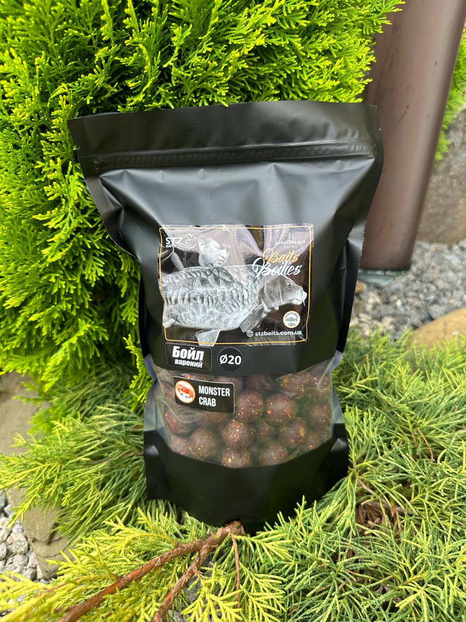 Бойли «Монстр краб» скатані на міксі,в основу якого входить борошно морських ракоподібних,що надає даному бойлу неповторного «смердючого» запаху та смаку,що сильно приваблює коропа, особливо великих особин.